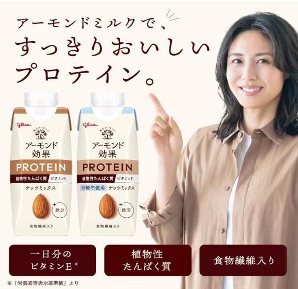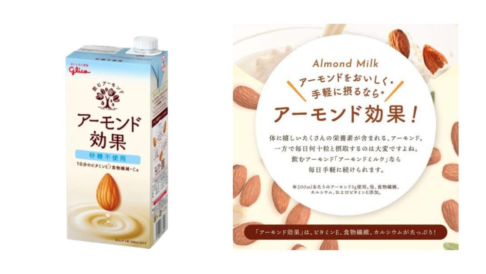 グリコ アーモンド効果は、香ばしいアーモンドの風味が特徴の植物性飲料です。