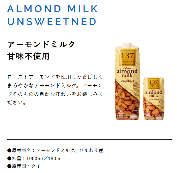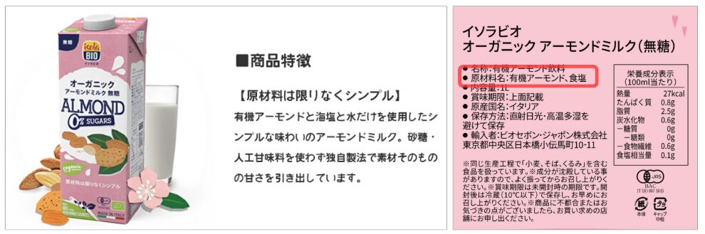 アーモンドミルクを選ぶ際は、成分表示を確認して無糖タイプを選ぶと安心です。