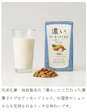 筑波乳業 無添加 濃いアーモンドミルク 砂糖不使用 125mlは、原材料が「アーモンド」のみという非常にシンプルなアーモンドミルクです。