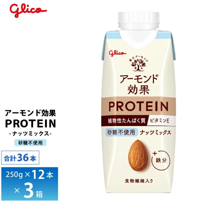 グリコ アーモンド効果PROTEIN ナッツミックス 砂糖不使用は、アーモンドミルクに植物性たんぱく質を加えた新しいプロテイン飲料です。