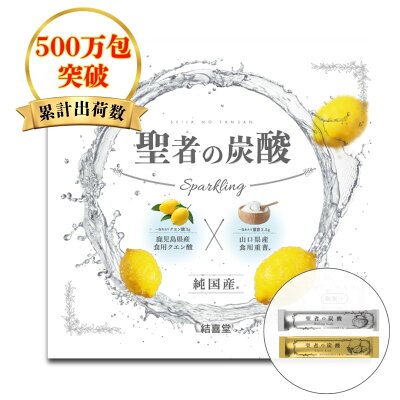 聖者の炭酸【純国産】重曹クエン酸水 計60包セットは、国産の重曹とクエン酸を使用した粉末タイプの健康サポート飲料。