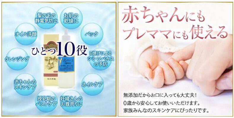 顔・体・髪など幅広く使え、口に入っても無害なので安心です。
