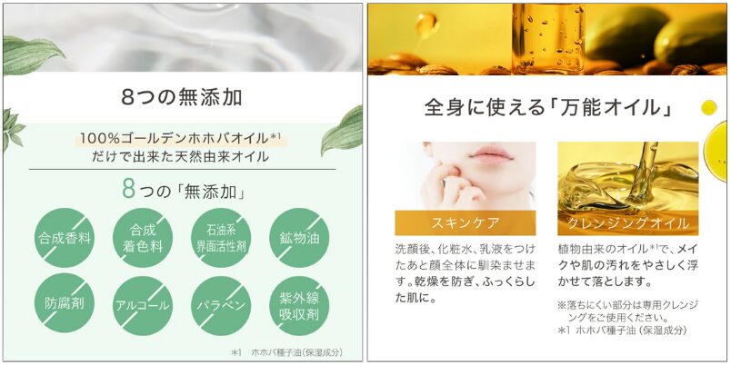 - デメリットは、オイル状質感のため夏場やベタつきが気になる方、また香りを楽しみたい方には無香料タイプゆえに物足りなさを感じる可能性があります。