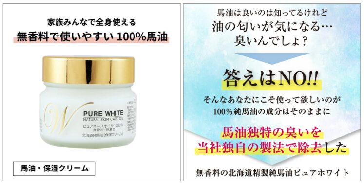 - デメリットとして、香料を含まないため馬油特有のにおいを感じる場合があります。