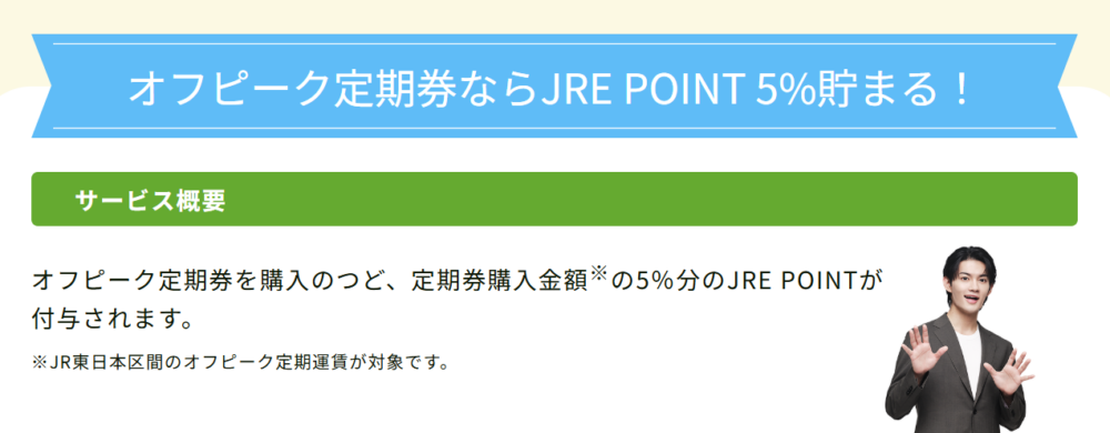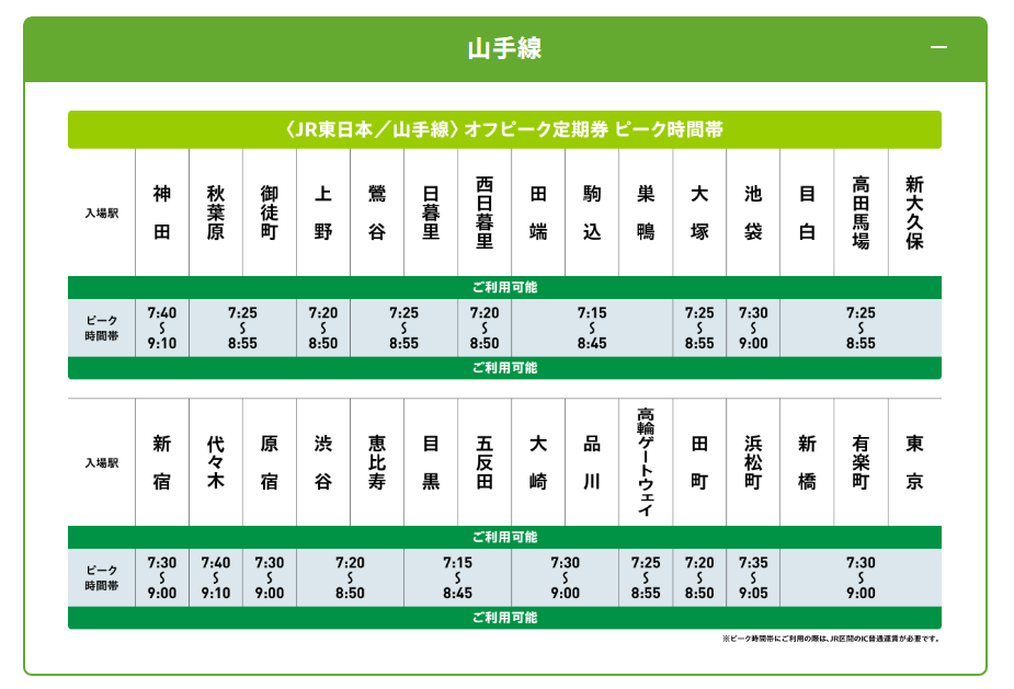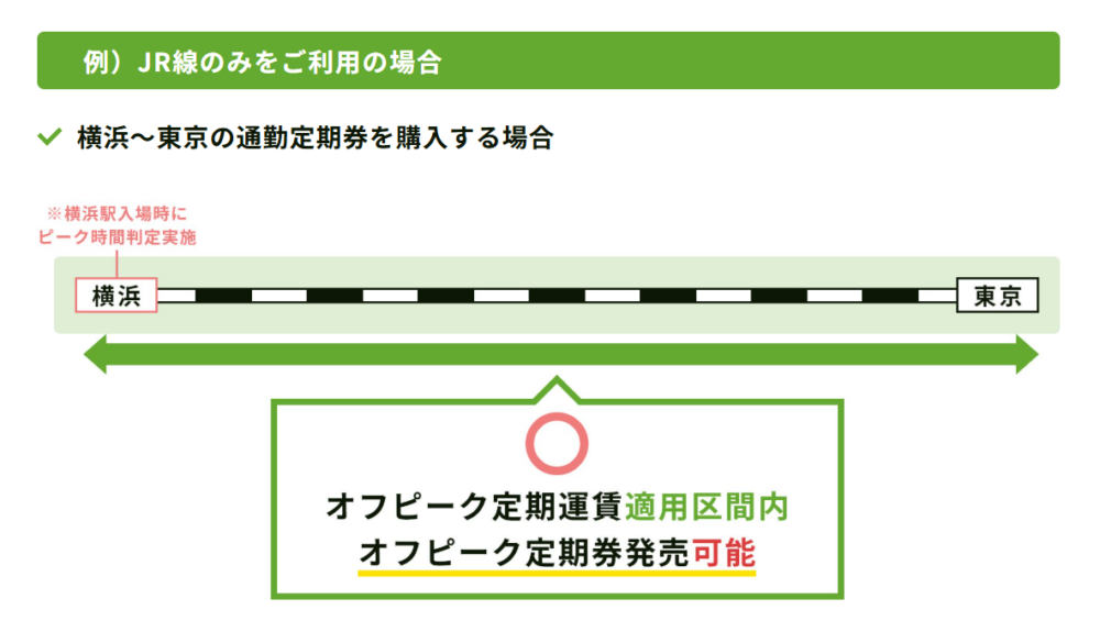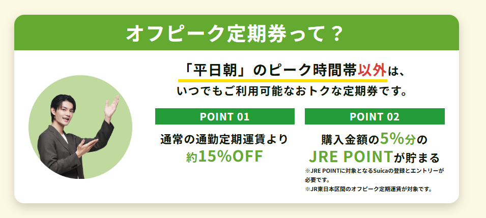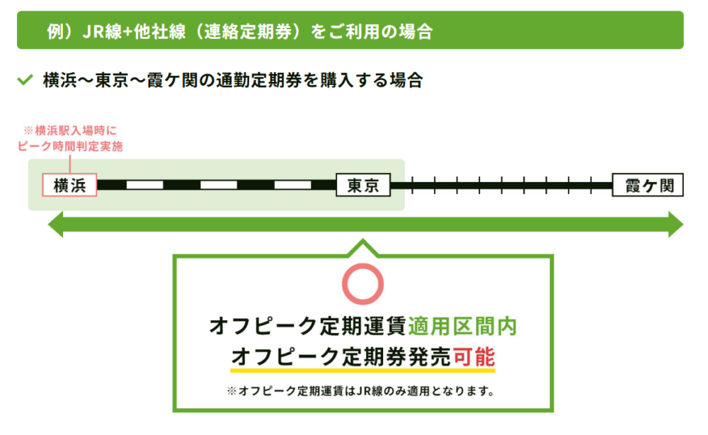 - 割引対象:JR東日本線のオフピーク定期券設定区間