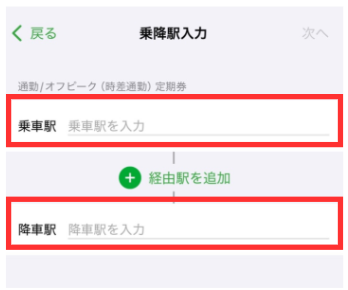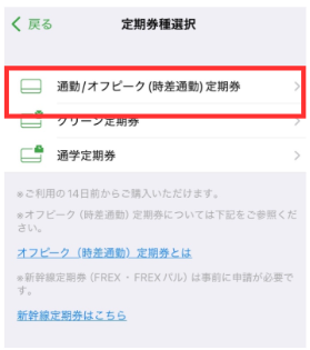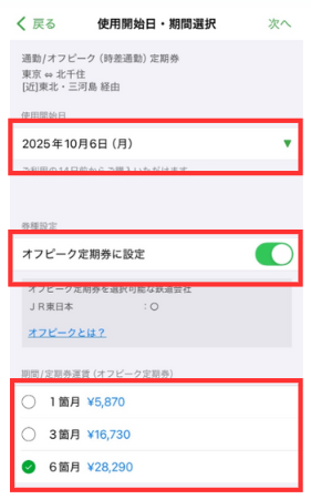 オフピーク定期券の設定が可能な区間であることを確認します。