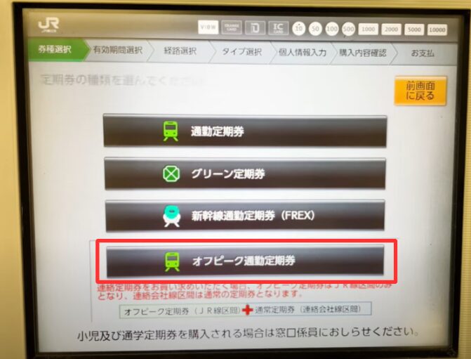 オフピーク定期券は、直接駅に備え付けの自動券売機で購入することができます。