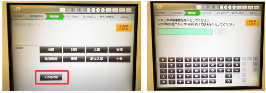 駅名が表示されない場合はその他の駅を選び、タッチパネルで駅名を入れていきます。