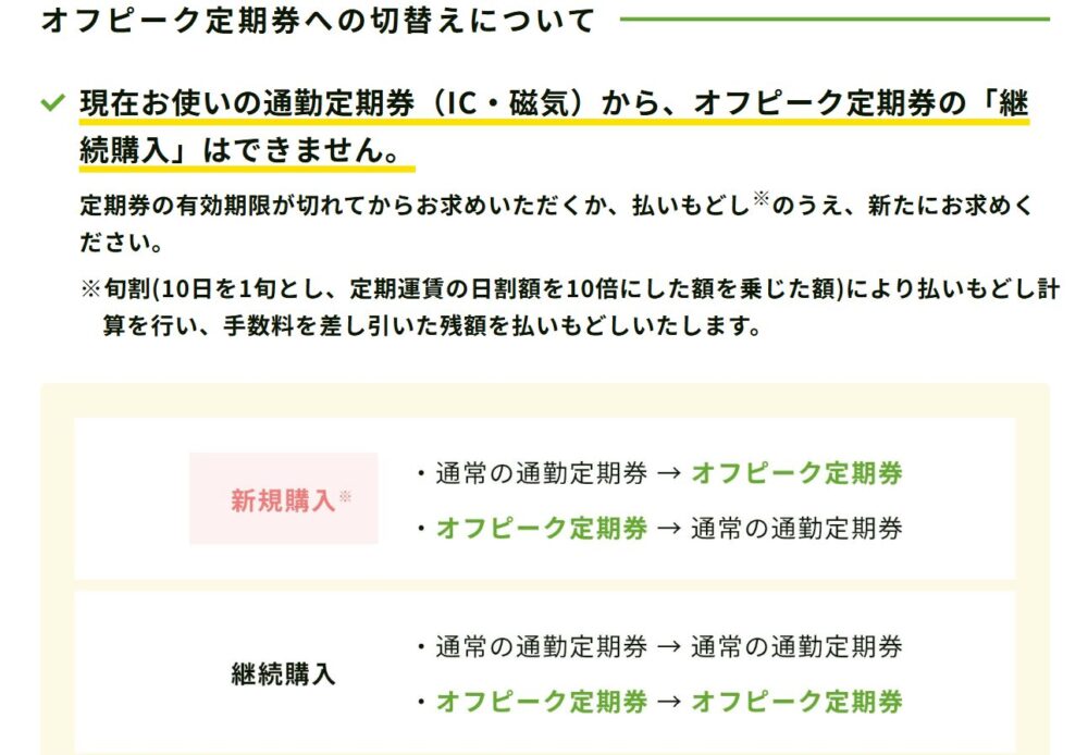 オフピーク定期券の切り替え方。継続購入はできない!?