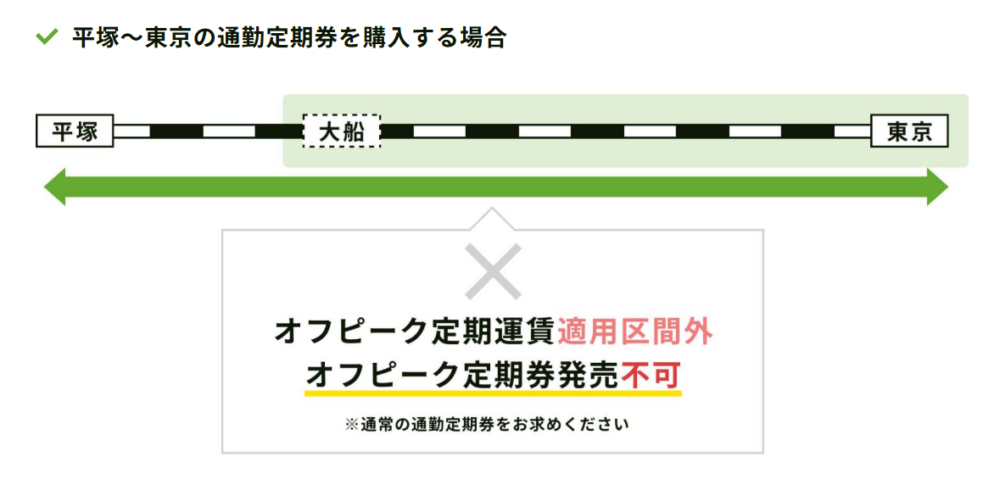 路線名が対象でも、発着駅・経路によってはオフピーク定期券の対象外となることがあります。