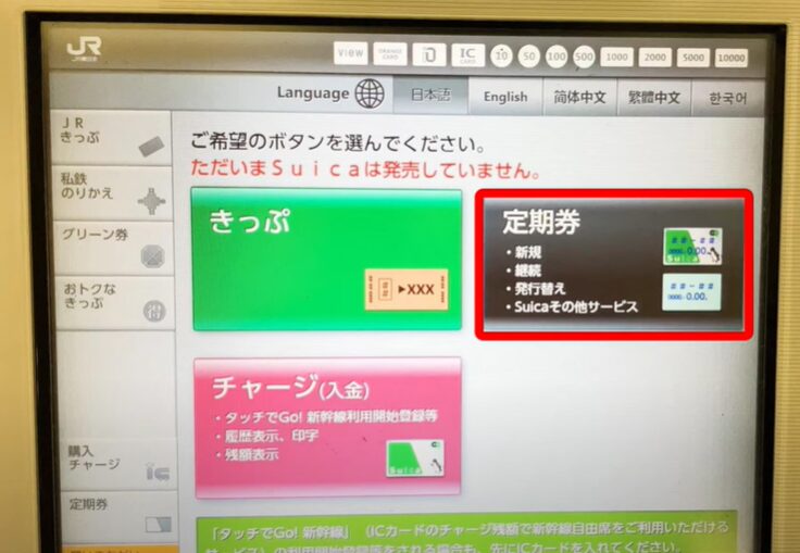 | 通勤定期券 | 指定席券売機、みどりの窓口 | Suicaへの搭載または新規発行を選択可能。 |