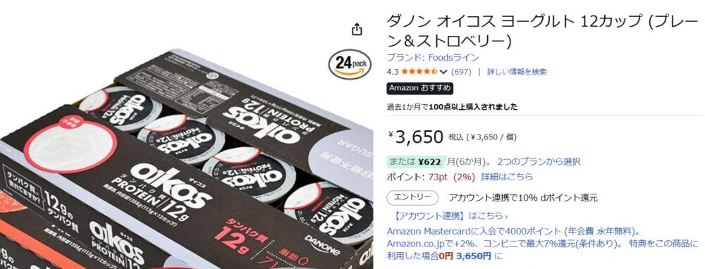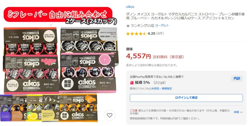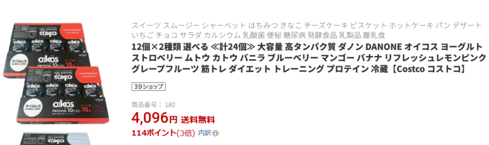 オイコスは通常のヨーグルトに比べて高たんぱく・低脂肪という特徴がありますが、その分価格は少し高めに設定されています。