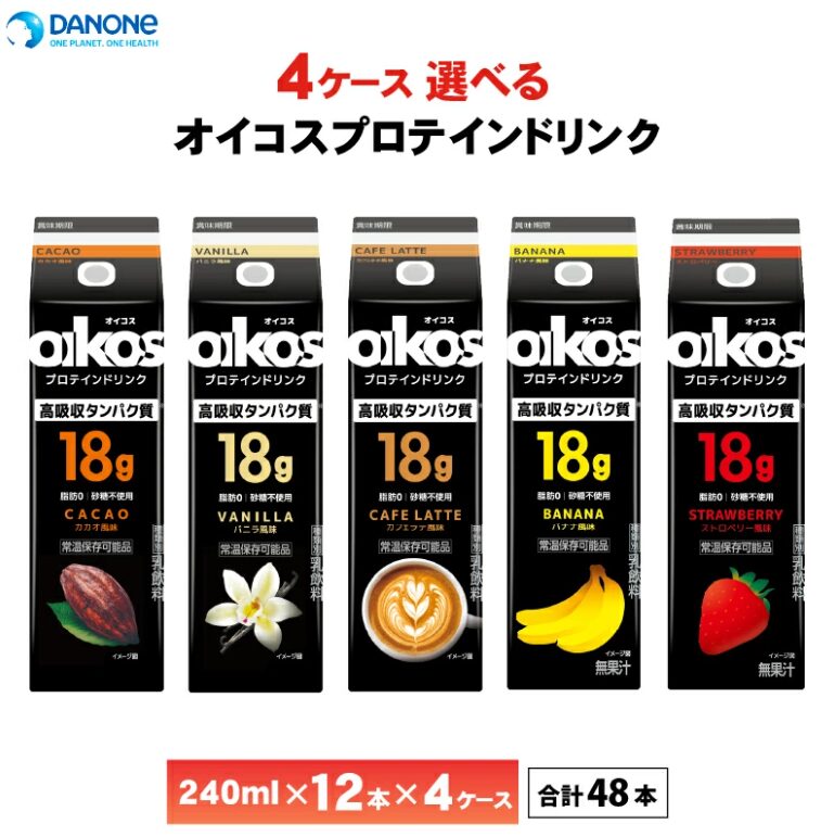 ダノンジャパン オイコス プロテインドリンク 高吸収タンパク質18g 240ml×48本は、人気のオイコスドリンクを4箱まとめて選べるセットです。