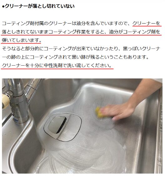 とくに油汚れや水垢が残っていると、コーティング効果がうまく発揮されないため、しっかりとした洗浄と乾燥が求められます。