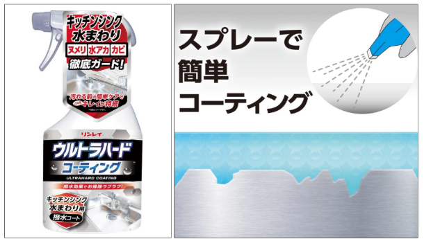 スプレーして拭き上げるだけで撥水効果を発揮するため、初心者でも扱いやすく、日常的なシンクやキッチンのお手入れに便利です。