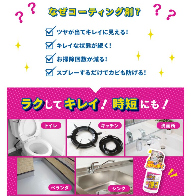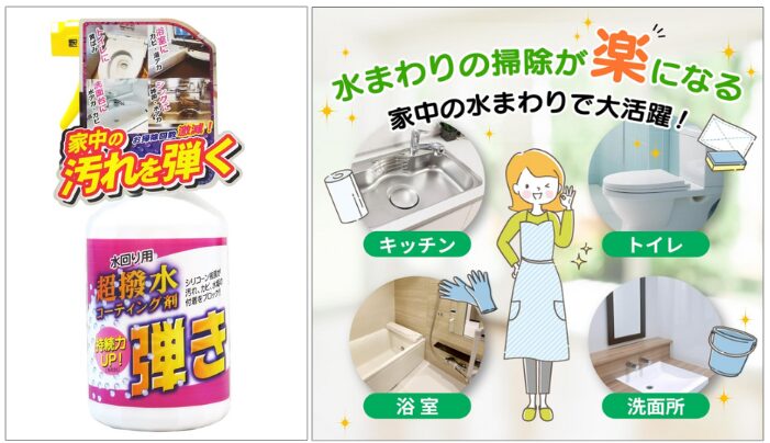 スプレーして拭くだけで強力な撥水効果を発揮し、手軽に水回りを清潔に保てます。