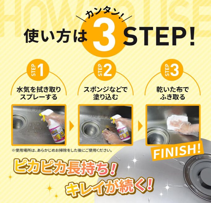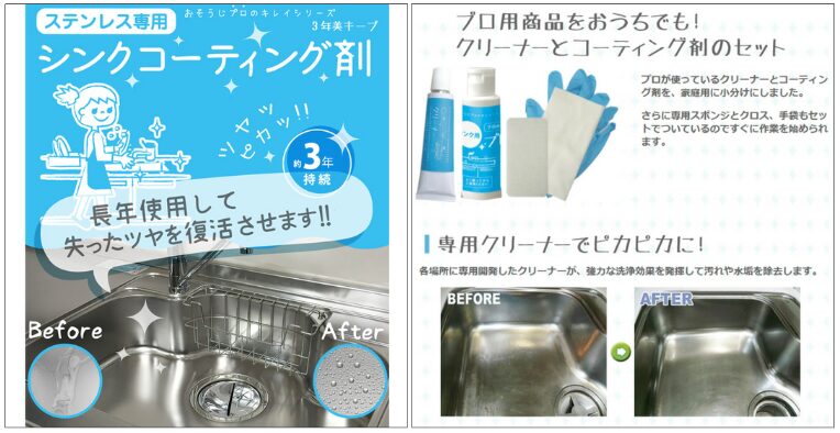最大で約3年間効果が続く耐久性の高さが特徴で、ステンレスシンクを美しく保ちたい方におすすめ。