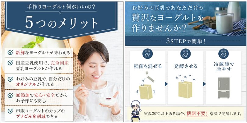 - デメリットとして、乳製品のヨーグルトに比べて風味や酸味がやや異なり、人によっては好みが分かれることがあります。