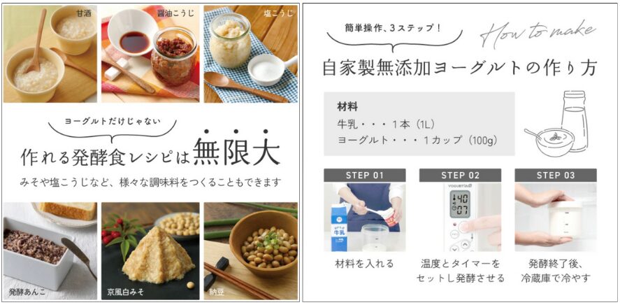 温度や時間を細かく設定でき、ヨーグルトや甘酒など多彩な発酵食品を自宅で簡単に作れます。