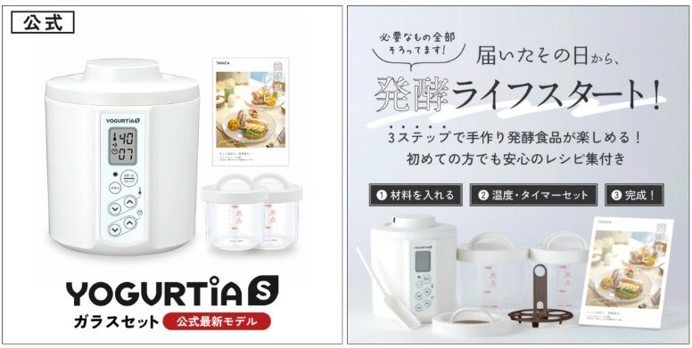 TANICAヨーグルトメーカー ヨーグルティアS:ガラスセット(YS-02G) は、国産のガラス容器付きで衛生的に使える最新モデル。