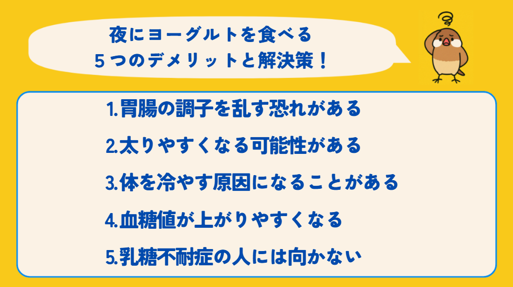 早速、夜にヨーグルトを食べるデメリットと解決策を紹介します。